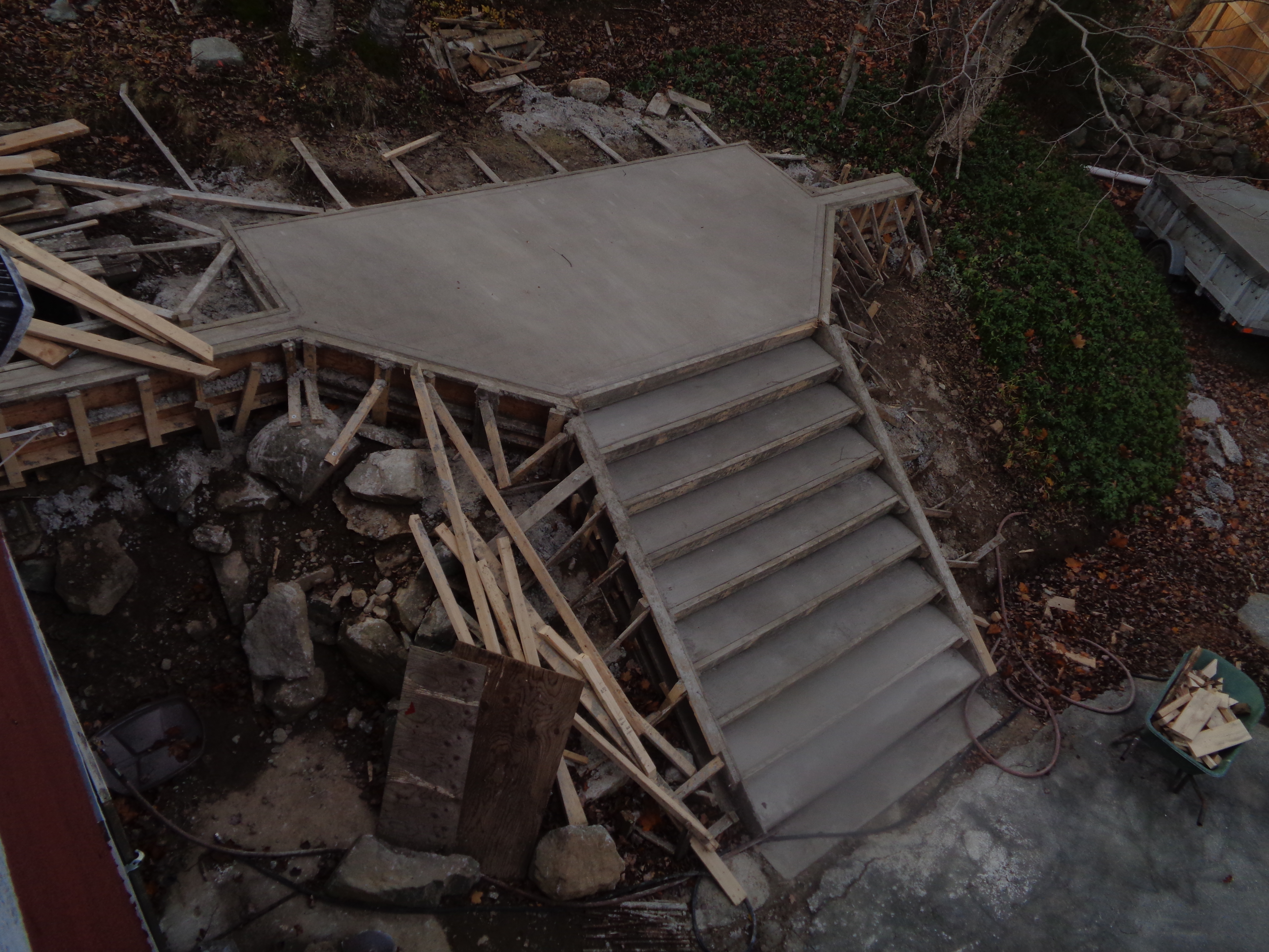 Concrete staircase in forms 8 days after pour November 13, 2024